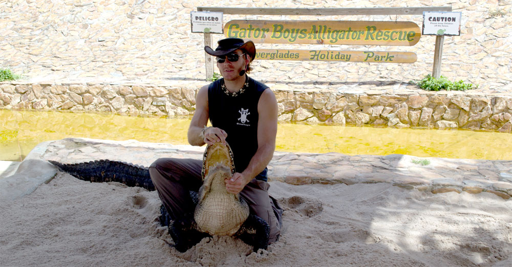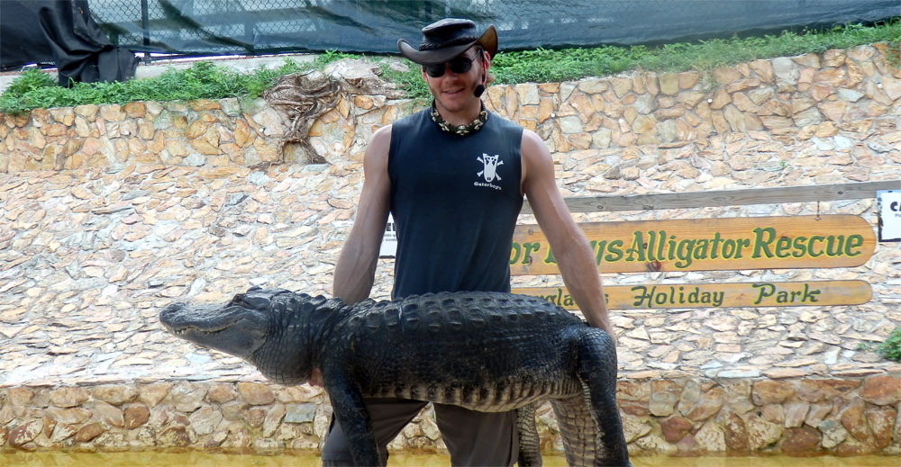 Nadat de airboat tour klaar was konden we door naar de Gator show. Hier gaat iemand optreden met een alligator, meestal is dit iemand die ook meedoet met de show van Gator Boys op Animal Planet. Vandaag was er Chris Gillette van de Gator Boys om de show te geven.