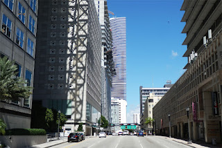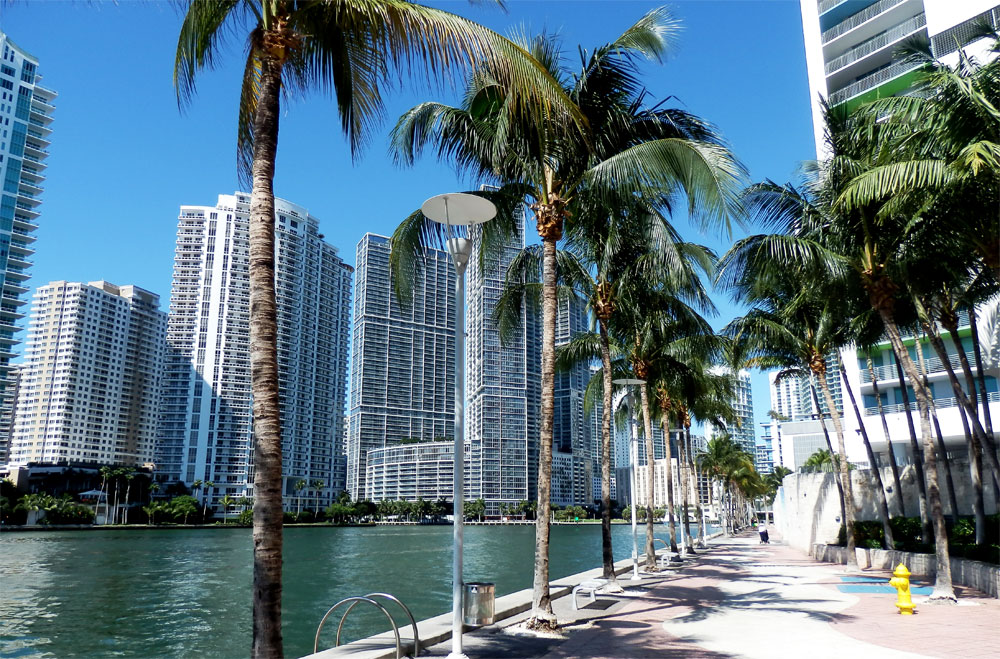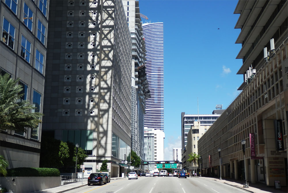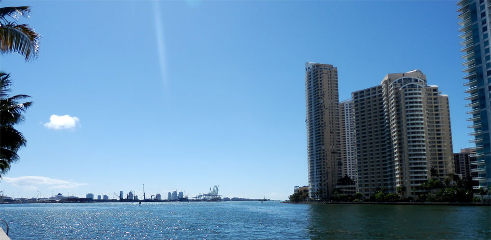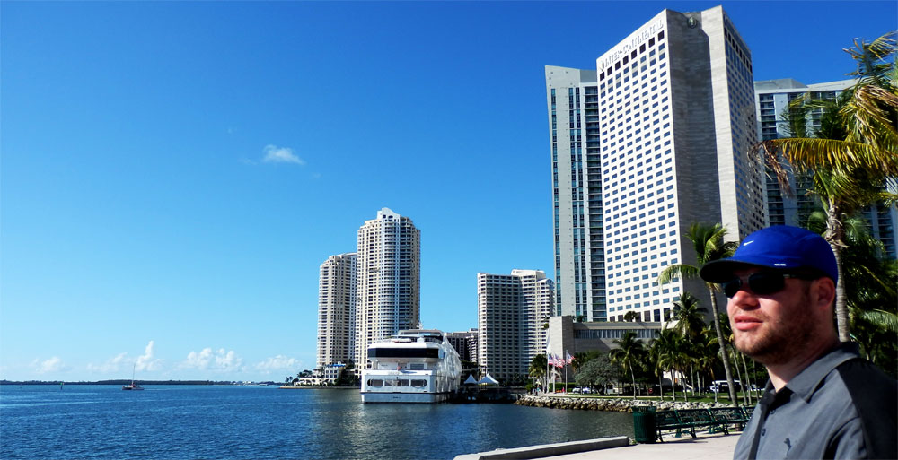 Na een korte wandeling lopen we richting een winkelcentrum dat grenst aan het Bayfront park. Het blijkt nog grotendeels gesloten op het moment dat wij daar aankomen. We kopen wat water (het is al aardig warm) en besluiten om richting het centrum van downtown Miami te gaan lopen wat aan de andere kant van Biscayne Blvd ligt.