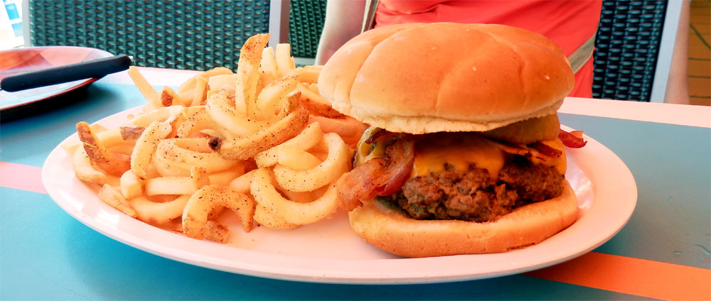 Inmiddels is het weer zo’n 12u en we beginnen honger te krijgen. We kiezen ervoor om bij Hooters wat te eten en te genieten van het uitzicht :-).