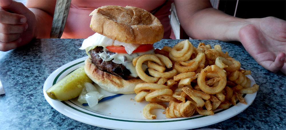 We gaan zitten bij Park Central en bestellen een bacon cheeseburger voor mij (Ruud) en Tamara gaat voor de kip.