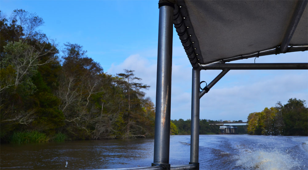 De moerasgebieden in Louisiana blijken compleet anders dan de Everglades in Florida. Veel meer bomen en het blijkt ook best diep te zijn op sommige plekken (2 tot 3 meter). Voordat we daadwerkelijk in een rustig moerasgebied aankomen varen we eerst een stukje over de rivier “Old Pearl River”. Dit is een redelijk brede rustige rivier waar veel gevist wordt op onder andere catfish.