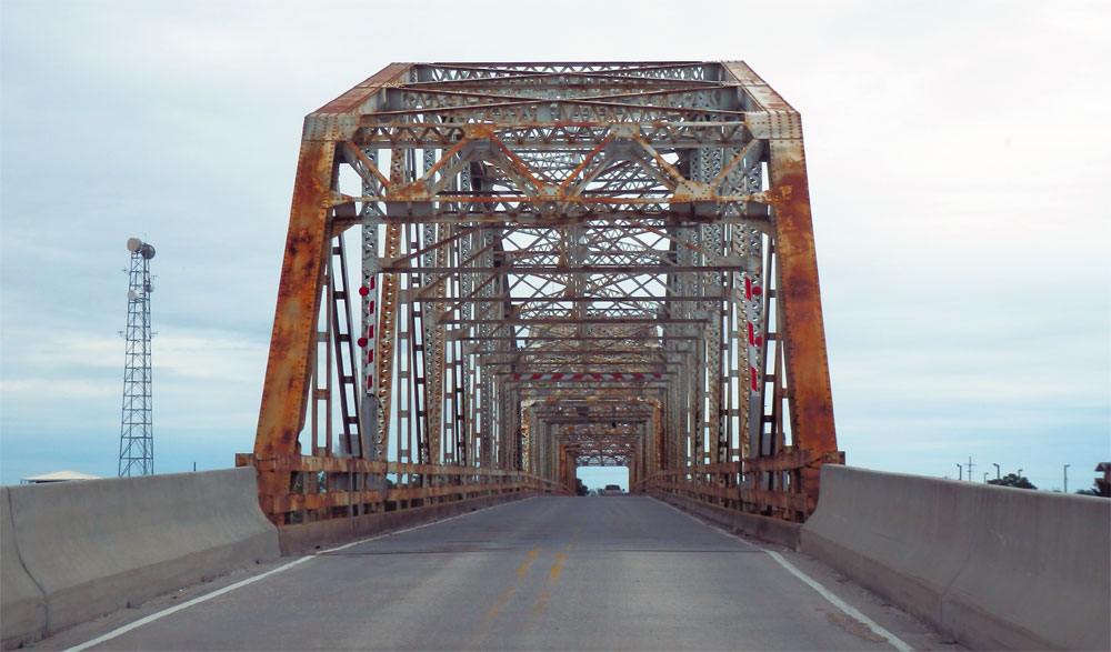Ja, dat kasteeltje is een echt huis overigens. We komen tijdens de route ook nog langs de dijk die gebouwd is nadat orkaan Katrina de stad grotendeels heeft verwoest. De stad is in het geheel omringt door een dijk en hermetisch af te sluiten met stalen deuren.