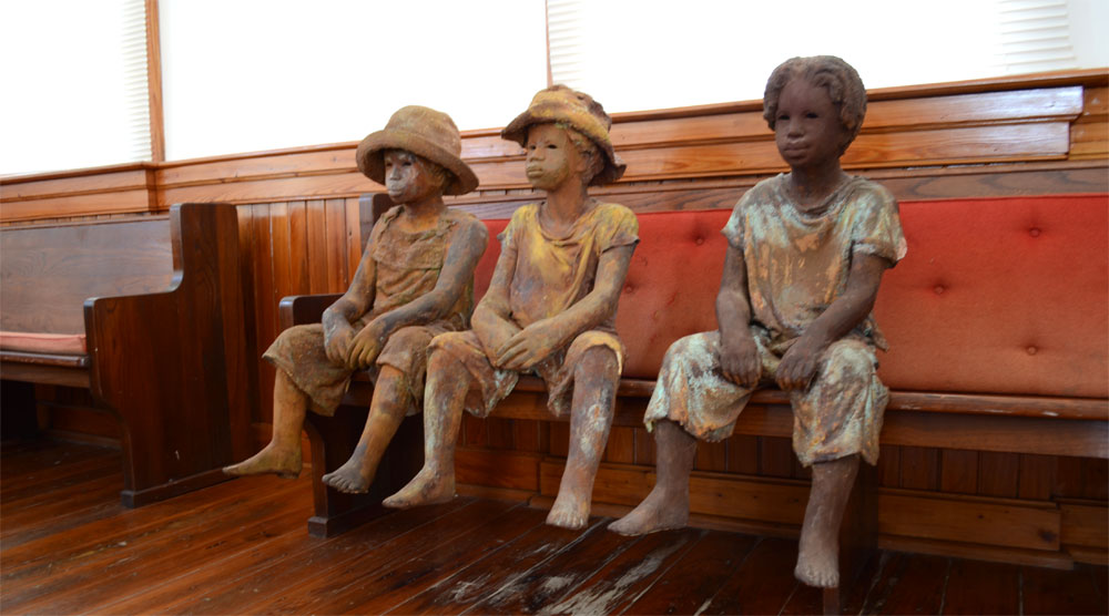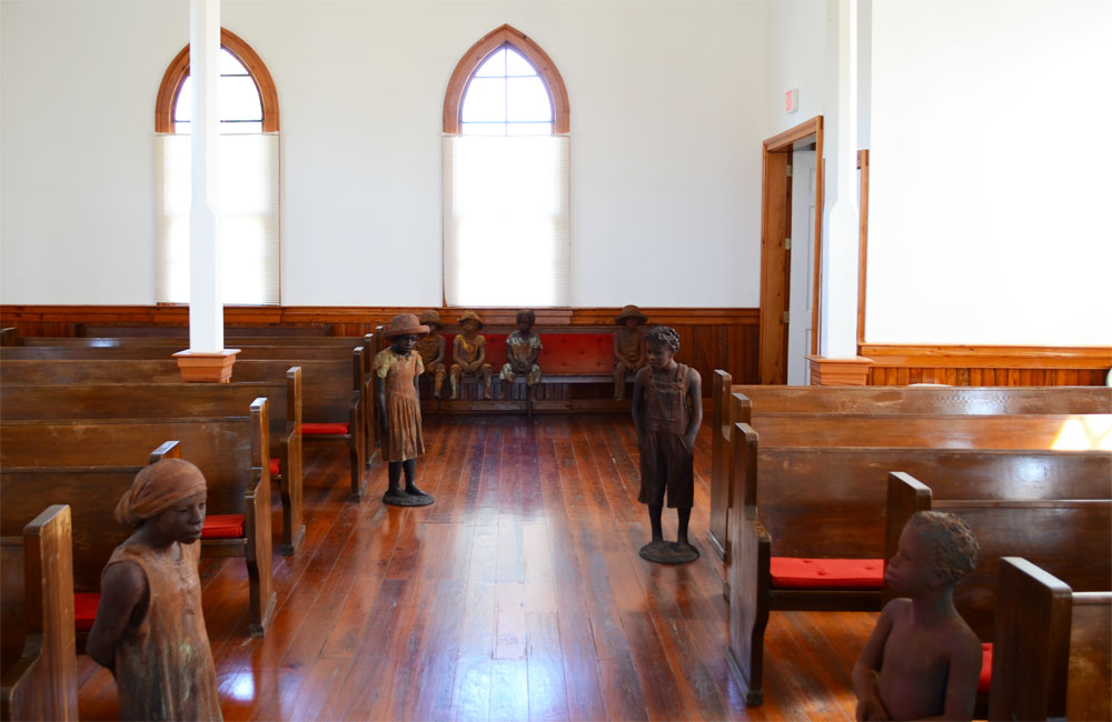 In het kerkje stonden beelden welke gekoppeld waren aan daadwerkelijke slaven. Bij het begin kreeg iedereen een toegangskaart welke ook gekoppeld was aan 1 zo’n beeld.