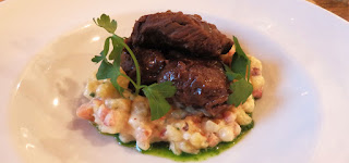 De gerechten waren zeer goed te noemen. Als afsluiter kozen we voor iets wat hier eigenlijk als voorgerecht op het menu stond. We gaan voor 5 verschillende soorten kazen, afkomstig van de koe en van een “beeeeeeeh” zoals de serveerster het noemde (haar Engels was niet zo heel goed), wij vermoeden een geit :-).
