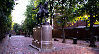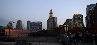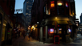 Eenmaal aangekomen in het downtown gedeelte, vallen de grote gebouwen en de drukte vooral ons op. Voor de rust hoef je niet naar Boston te komen. Een freedom trail route die loopt door allemaal relatief nieuwe gebouwen heen, en dan moet je je voorstellen dat een klein oud gebouwtje tussen de nieuwe grote gebouwen staat. Onze route is overigens voor een groot deel in het donker gelopen. Dat heeft van de ene kant wel iets, maar van de andere kant is het wel jammer dat een aantal bezichtigingen niet toegankelijk waren.