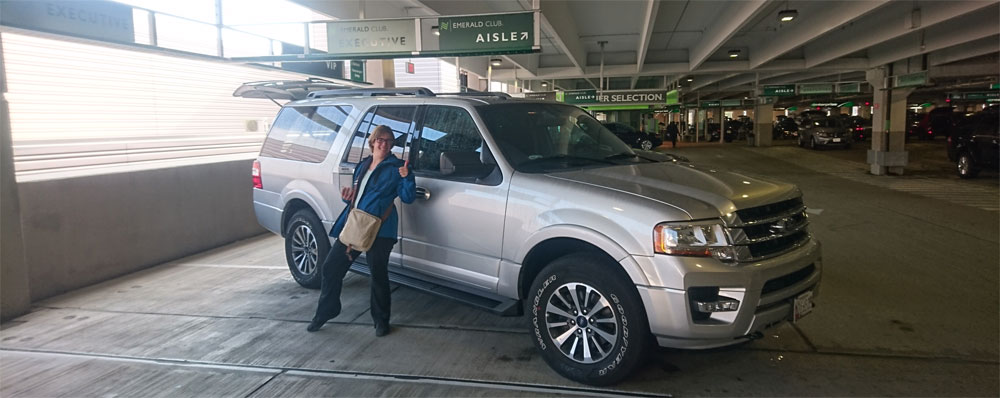 Aangekomen in de garage werden we enthousiast ontvangen door een dame die met ons meeliep naar de opties die we hadden. Er stonden twee Ford Expeditions waarvan de normale editie en de verlengde editie, ik besloot dat we de verlengde editie nodig hadden vanwege de ruimte. De eerste stap voordat we op weg gaan naar het hotel was de dashcam monteren, iets wat tegen viel omdat de dubbelzijdige tape die we hadden meegenomen niet bleef zitten. Dat was dus een taak voor de volgende dag, dubbelzijdige tape gaan halen.
