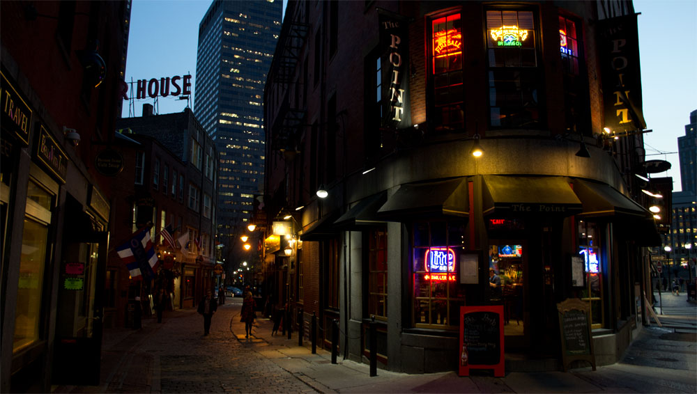 Eenmaal aangekomen in het downtown gedeelte, vallen de grote gebouwen en de drukte vooral ons op. Voor de rust hoef je niet naar Boston te komen. Een freedom trail route die loopt door allemaal relatief nieuwe gebouwen heen, en dan moet je je voorstellen dat een klein oud gebouwtje tussen de nieuwe grote gebouwen staat. Onze route is overigens voor een groot deel in het donker gelopen. Dat heeft van de ene kant wel iets, maar van de andere kant is het wel jammer dat een aantal bezichtigingen niet toegankelijk waren.