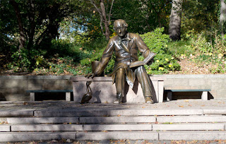 We lopen verder naar de volgende locatie, een vijver met een “Alice in Wonderland” beeld, dit beeld staat naast een grote vijver. Dit beeld is geplaatst zodat iedereen (of eigenlijk enkel kinderen) erop kunnen klimmen. Gelukkig was dat bij ons niet het geval, zodat ik het beeld kind-loos op de foto heb kunnen zetten. Bij de vijver staat ook het Hans Christian Andersen standbeeld.