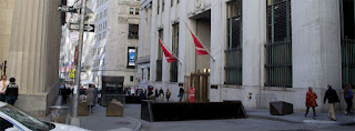 Uiteindelijk komen we aan in het financial district, waar we een bezoek zullen brengen aan Wall Street, de Stock Exchange en de Federal Reserve bank of New York. Het hele gebied is grotendeels afgesloten voor regulier verkeer en er lopen best wel wat mannetjes rond met flinke bewapening.