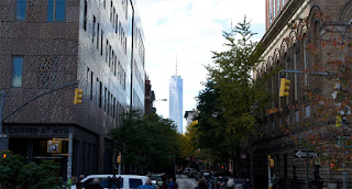 Dan lopen we naar het One World Trade Center, voor het One World Observation tower, we sluiten buiten in de rij aan, we hebben vooraf geen tickets gekocht. Binnen een kwartiertje staan we binnen bij de kassa twee tickets af te rekenen en mogen we door naar de security check. Deze check is ongeveer gelijk als bij de luchthavens. Eenmaal door de security check heen loop je door een aantal presentaties naar de liften.
