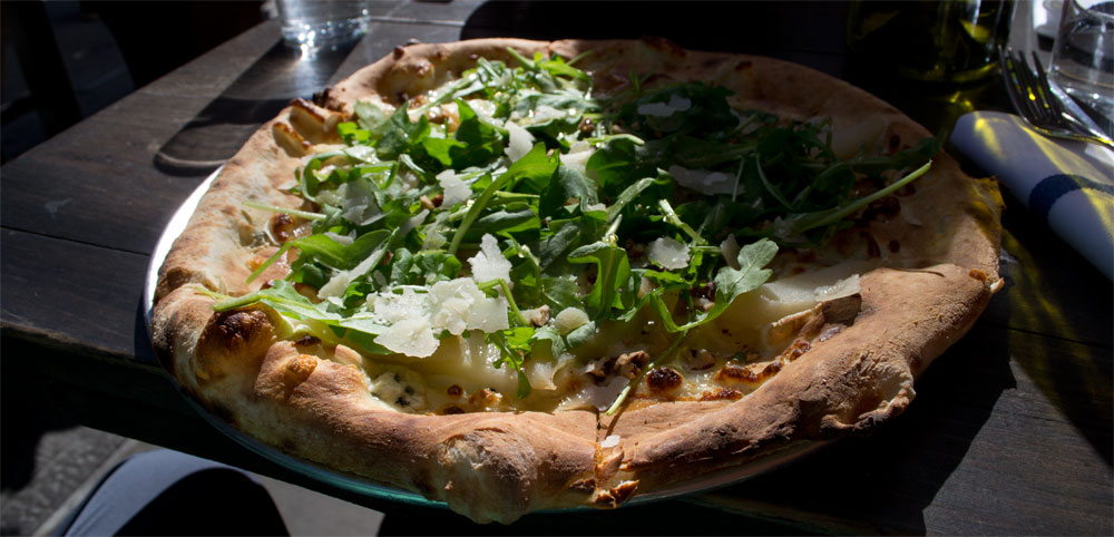 We belanden uiteindelijk bij een leuk Italiaans restaurant. Tamara gaat voor een salade en ik ga voor een pizza. Beide gaan er goed in, wat energie aan vullen kan geen kwaad.