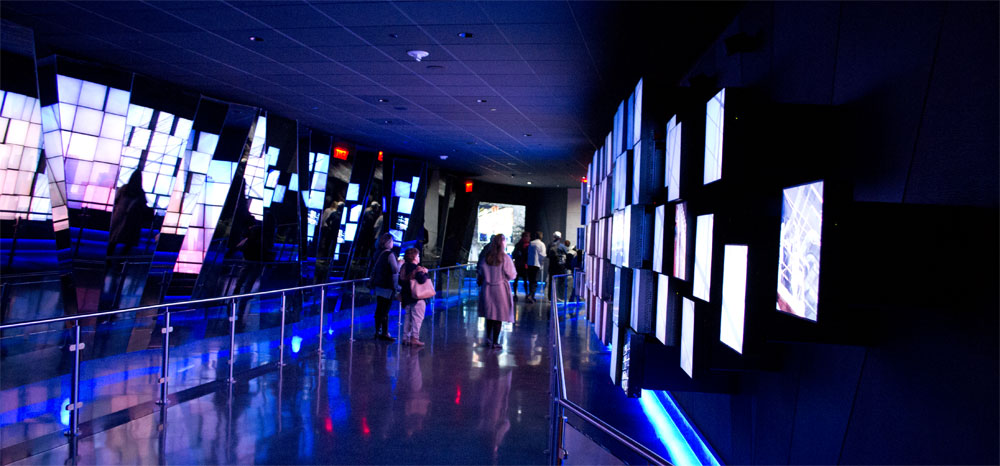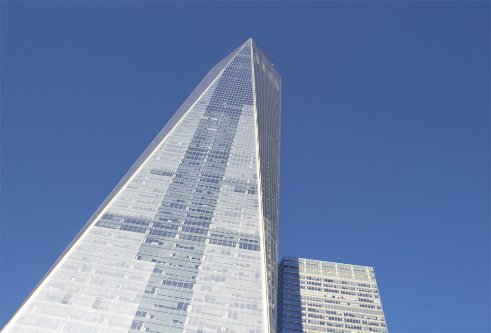 Dan lopen we naar het One World Trade Center, voor het One World Observation tower, we sluiten buiten in de rij aan, we hebben vooraf geen tickets gekocht. Binnen een kwartiertje staan we binnen bij de kassa twee tickets af te rekenen en mogen we door naar de security check. Deze check is ongeveer gelijk als bij de luchthavens. Eenmaal door de security check heen loop je door een aantal presentaties naar de liften.