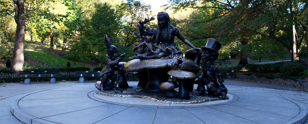 We lopen verder naar de volgende locatie, een vijver met een “Alice in Wonderland” beeld, dit beeld staat naast een grote vijver. Dit beeld is geplaatst zodat iedereen (of eigenlijk enkel kinderen) erop kunnen klimmen. Gelukkig was dat bij ons niet het geval, zodat ik het beeld kind-loos op de foto heb kunnen zetten. Bij de vijver staat ook het Hans Christian Andersen standbeeld.