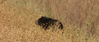 Als we dan bijna op het einde zijn en de hoop op andere diertjes al bijna hebben opgegeven, zien we opeens een grote zwarte pluizebol opduiken. Het blijkt een beer te zijn, welke aan het chillen is in een groot veld.