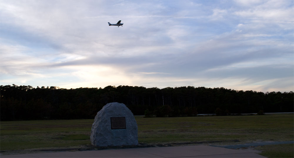 We komen rond kwart over 4 aan, kopen twee kaartjes en kijken rond op de plek waar het eerste gemotoriseerde vliegtuig opsteeg.