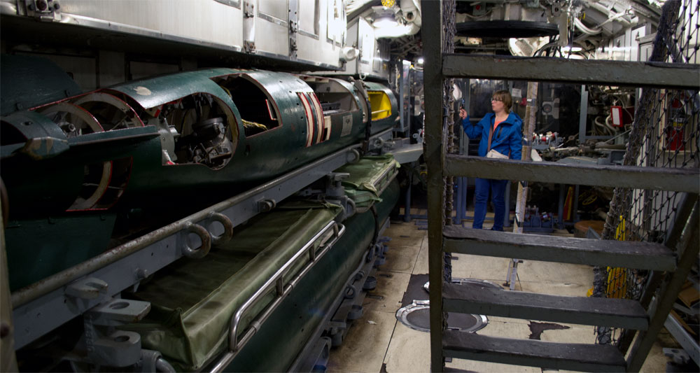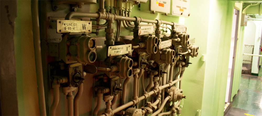 Als we het vliegdeckschip hebben bekeken gaan we naar de onderzeeër toe. Als we de onderzeeër binnen gaan merken we snel dat deze wel de opzet heeft om een goed beeld weer te geven hoe zo’n onderzeeër vroeger gebruikt werd. Als je claustrofobie hebt is het niet de plek waar je moet zijn. Elke doorgang is ongelooflijk klein en je komt ze alleen door met wat acrobatische techieken, gelukkig heb ik met mijn sportief afgetraind lichaam niet zoveel moeite mee :-). Elke gang en elk werkhok was ongelooflijk klein. Het was echter wel heel bijzonder om zon onderzeeër van binnen te zien.