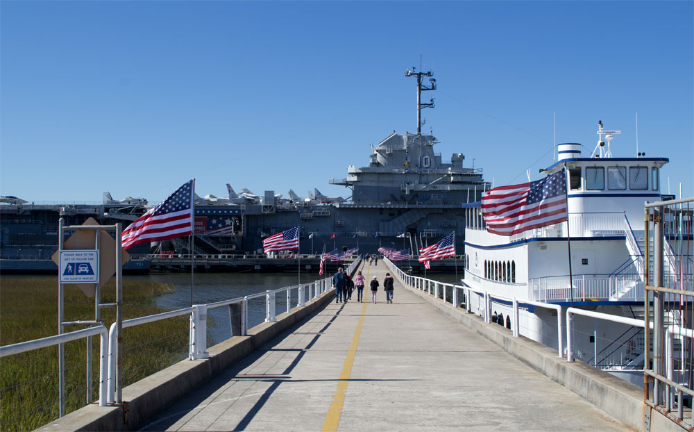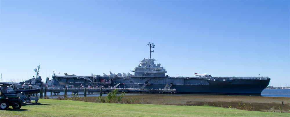 We kopen twee kaartjes per persoon en beginnen met het vliegdekschip. We hebben hier ongeveer een uur de tijd voor, om half 2 vertrekt namelijk de laatste boot naar Fort Sumter. Een uur is eigenlijk veel te kort om alles goed te bekijken, eigenlijk zou je er minimaal 3 uur hier voor uit moeten trekken.