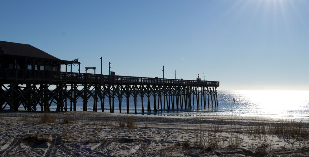 Aangekomen in Myrtle Beach schijnt het zonnetje,maar het windje is nog wel fris. Het is dan ook nog vroeg. In Myrtle Beach valt het grote reuzenrad meteen op, waar we ook tegenover de auto aan een lege staat kunnen parkeren. Het is hier ongeveer even stil als in Virginia Beach, noem het maar gewoon uitgestorven.