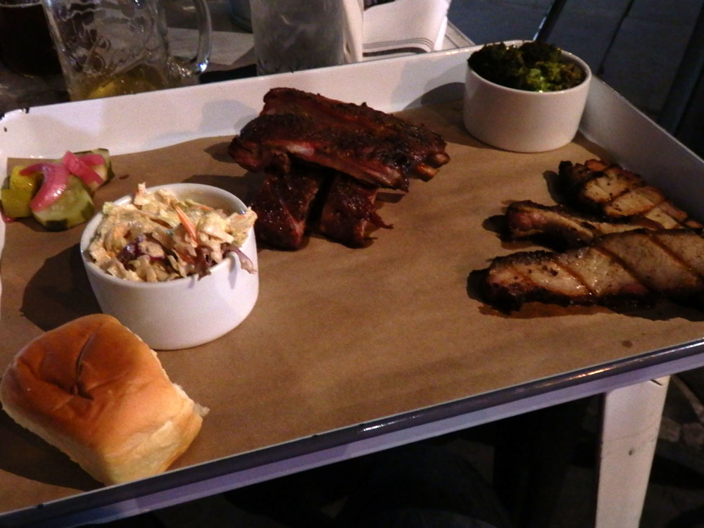 In de avond bestellen we weer een uber en krijgen ditmaal een grote BMW 7-serie voorgereden. In het centrum belanden we uiteindelijk bij een BBQ restaurant waar we heerlijk hebben gegeten en ook wat lokale bieren hebben geproefd. Het lijkt weinig wat op het bord ligt, maar we zaten echt vol op het eind. Begonnen buiten op het terras zijn we uiteindelijk op het laatst toch maar even naar binnen gegaan, het begon toch flink af te koelen.
