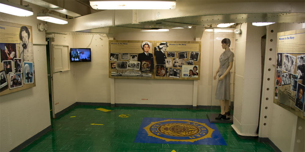 Als we door het vliegdeckschip lopen valt ons op dat jet een hele andere opzet is dan het schip dat we in Wilmington gezien hebben. Waar in Wilmington de nadruk had op hoe het er vroeger echt uitzag, is het vliegdeckschip juist omgebouwd tot een groot museum. Onze voorkeur gaat uit naar de opzet zoals in Wilmington.