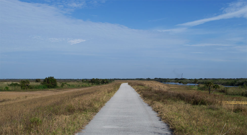Klaar met rondneuzen in het centrum, en dat ben je al vrij snel, stappen we weer in de auto naar het volgende punt: uitzicht op Lake Okeechobee. Het meer is omringt door een dijk, en op sommige plekken ook nog met een rivier(tje). De navigatie heeft veel moeite om een goed plek aan te wijzen, de bewegwijzering naar een uitzicht is bijzonder verwarrend. Een voorbeeldje van een bord dat we regelmatig tegen kwamen: