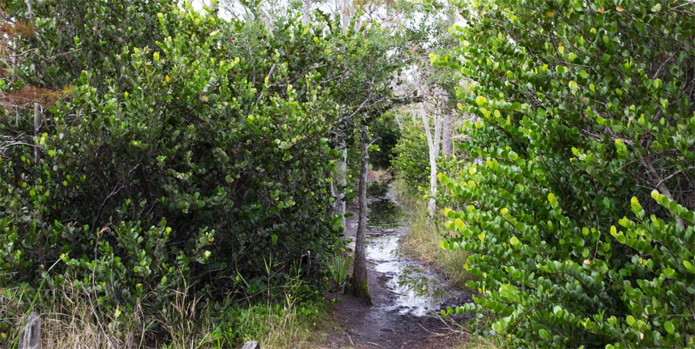 Deze trail heeft geen paden zoals de vorige trail, het is voornamelijk zand. In principe geen probleem, echter het kan er flink nat zijn. Wij hebben onze wandelschoenen niet bij, dus als het te erg wordt kunnen we niet verder. Heel erg jammer, want de trail was echt meer natuur dan de vorige hadden wij aan het begin de indruk.