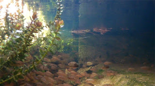 Het water was overal kraakhelder, je kon overal vissen zien zwemmen. We hebben nog een action-cam losgelaten in het water, maar de vissen waren over het algemeen bang van zo’n apparaat :-). Soms durfde er 1 voor de camera te komen, maar meestal vlogen ze gelijk weg als ik boven het water hing :-(.