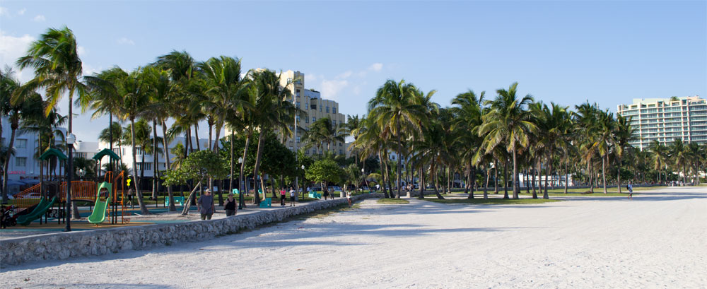 We lopen weer via het park bij Ocean Drive richting ons appartement. Dan hebben we nog even de tijd om ons op te frissen en om te kleden voor vanavond.