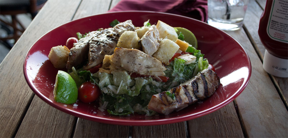 Klaar met de geweldige tour is het inmiddels al 3 uur geweest. We besluiten maar gelijk te lunchen bij het restaurant dat naar het haventje ligt. Tamara gaat voor een salade met vis, ik ga voor een broodje met vis.