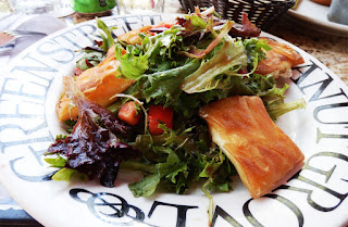Uiteindelijk belanden wij op een terras bij Greenstreet Cafe, hier bestelt Tamara een salade met geitenkaas en ik ga voor een lamburger, een hamburger welke ook is voorzien van geitenkaas.