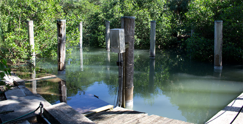 De achterkant van de tuin ligt aan de Biscayne Bay. Je hebt hier een geweldig uitzicht op de skyline van Miami en Key Biscayne. We zien ook nog een zeppelin voorbij komen :-). De vrouw welke uitleg gaf vertelde dat er de laatste weken regelmatig zeekoeien te zien waren, deze hebben wij helaas vandaag niet kunnen spotten.