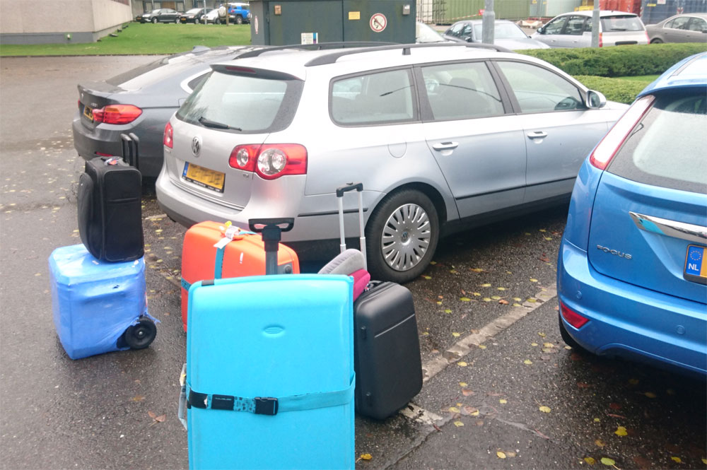 Als we rond half 3 terugkomen in het appartement pakken we de laatste kleine dingen en en gooien de boel in ons voertuig.