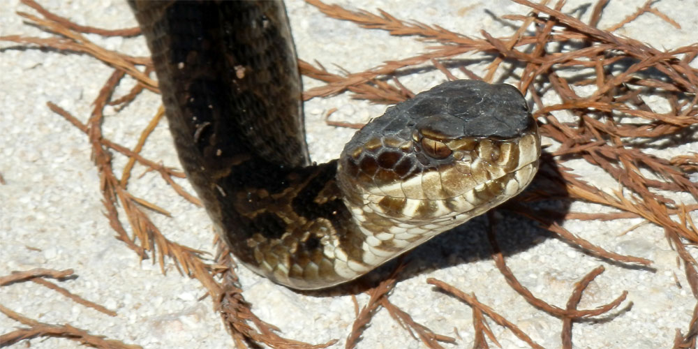 Dan ga ik toch voor de cottonmouth. Meestal zie je die vrij lastig, en dit keer zat hij midden op de weg.