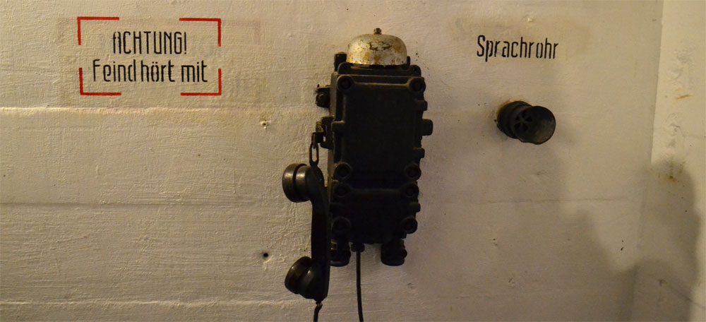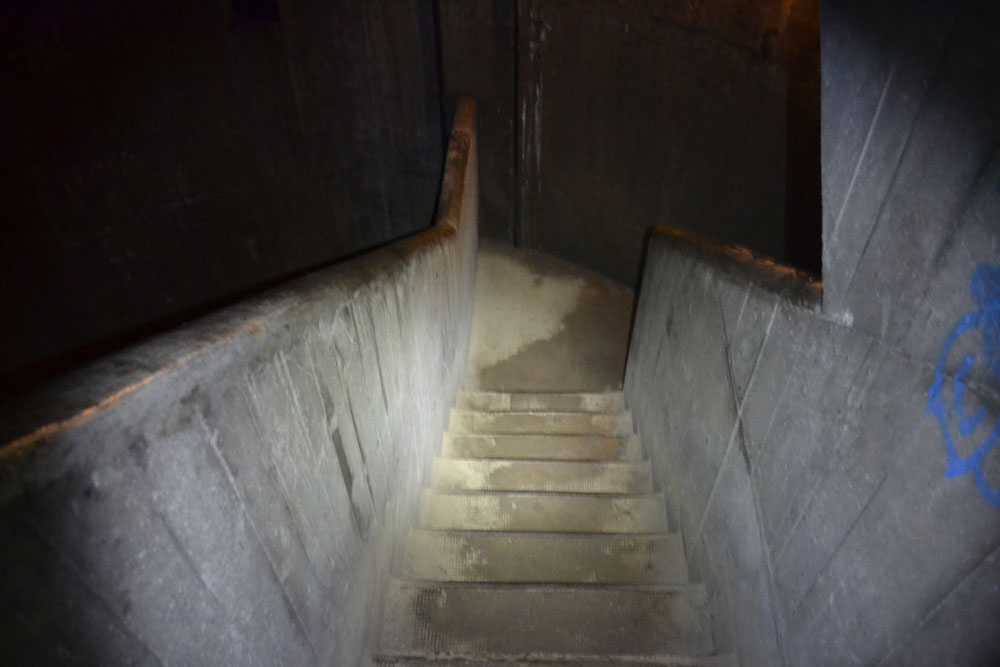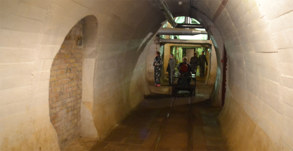 Het gangenstelsel is verdeelt over 1 grote hoofdgang en kleinere vertakkingen naar individuele bunkers. Elke tak kan meerdere bunkers en vertakkingen bevatten. Wij lopen nu eerst via een kleine tak richting de hoofdbunker. De langen zijn lang, heel erg lang. Als het licht uitgezet wordt is het echt pikdonker. Aan het begin van het gangenstelsel is overal nog ligt aangelegd, echter na de eerste vertakking stopt de elektra en zijn we echt aangewezen op onze zaklampen.