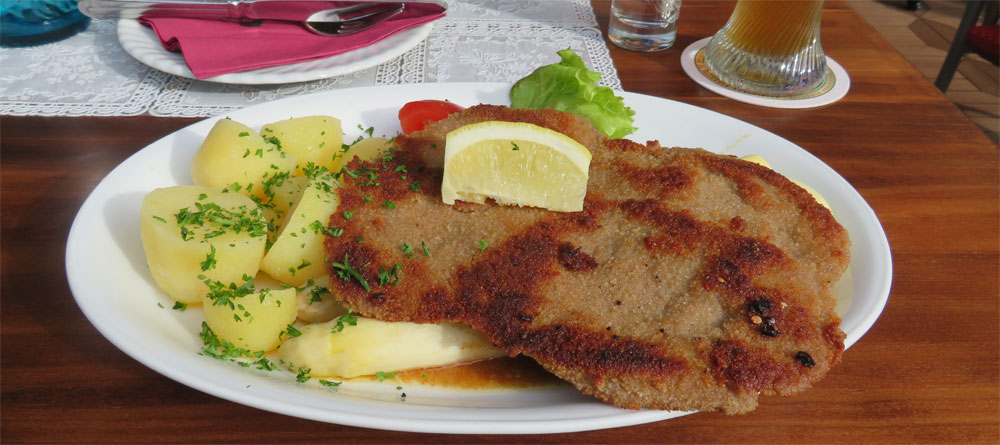 We hebben weer dezelfde gedeelte in Berlijn uitgezocht om wat te gaan eten. Tamara gaat voor de Schnitzel, en ik ga voor een spies met varken en kalkoen. Wederom met een lekker biertje erbij :-).