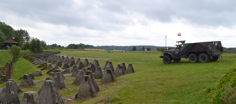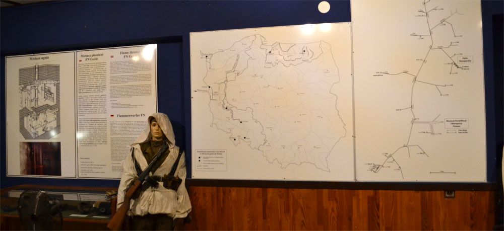 We beginnen met de tour. We starten in een klein gebouwtje waar wat spullen worden tentoongesteld, nadien begint hij met een uitleg over het ontstaan en het doel van het complete project. De bouw van 100 kilometer lange verdedigingslinie met ondergrondse tunnels is in vier jaar tijd afgerond en heeft 1 miljard Deutsche Mark gekost, een enorm bedrag voor die tijd. Adolf Hitler heeft dit complex tweemaal bezocht. Het doel van dit project was de verdediging van de oost-linie tegen het Rode leger.