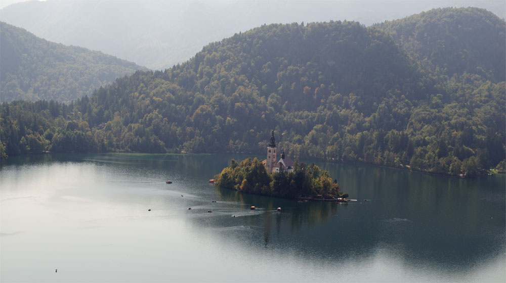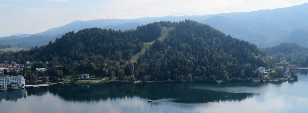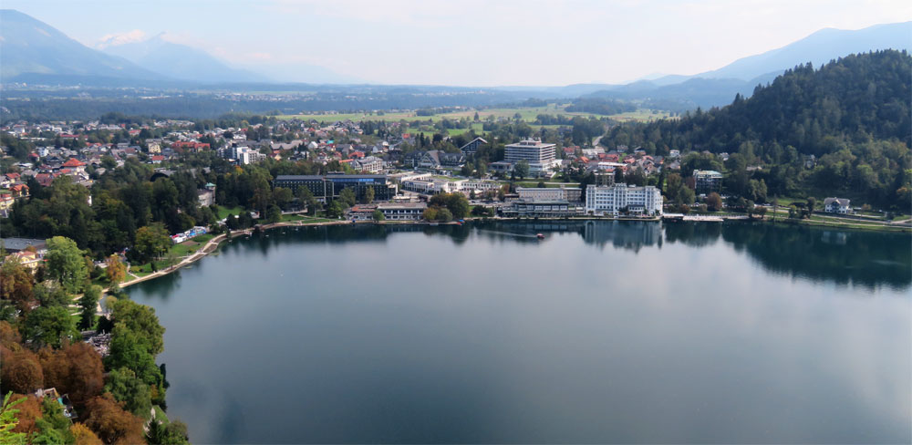 We kopen twee kaartjes (welke duurder waren dan we hadden verwacht: 10 euro pp) en gaan eerst eens het bekende Bled meer bekijken vanaf het kasteel. Het uitzicht is geweldig, ook al is het aan 1 kant niet helemaal mistvrij.