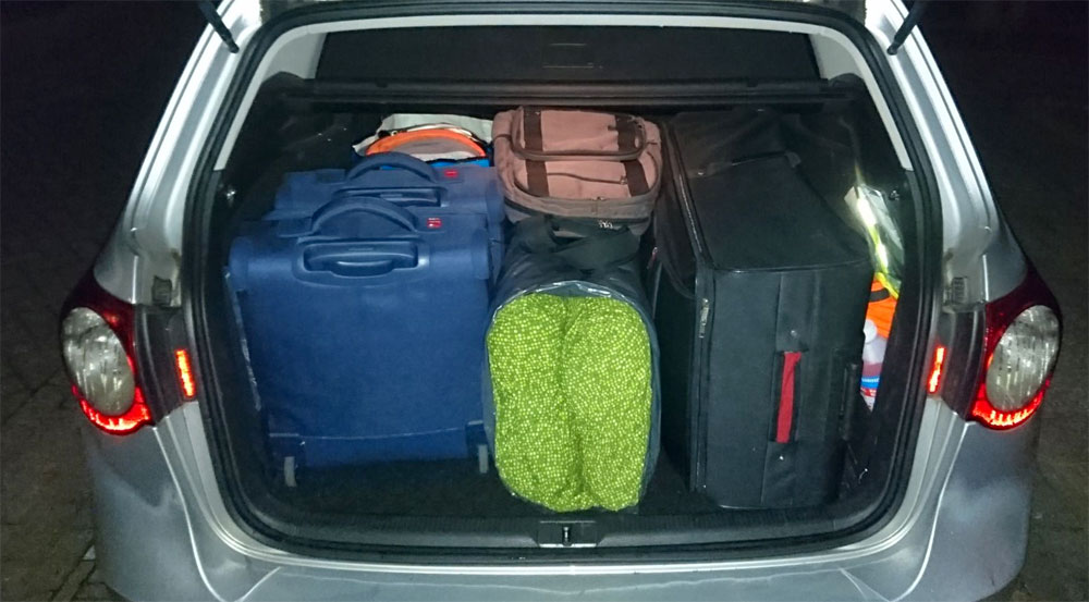 Om kwart over 2 in de nacht hebben we alle spullen in de auto liggen, we zijn klaar om te vertrekken.. Pfff, wat een tijd om te vertrekken zeg.