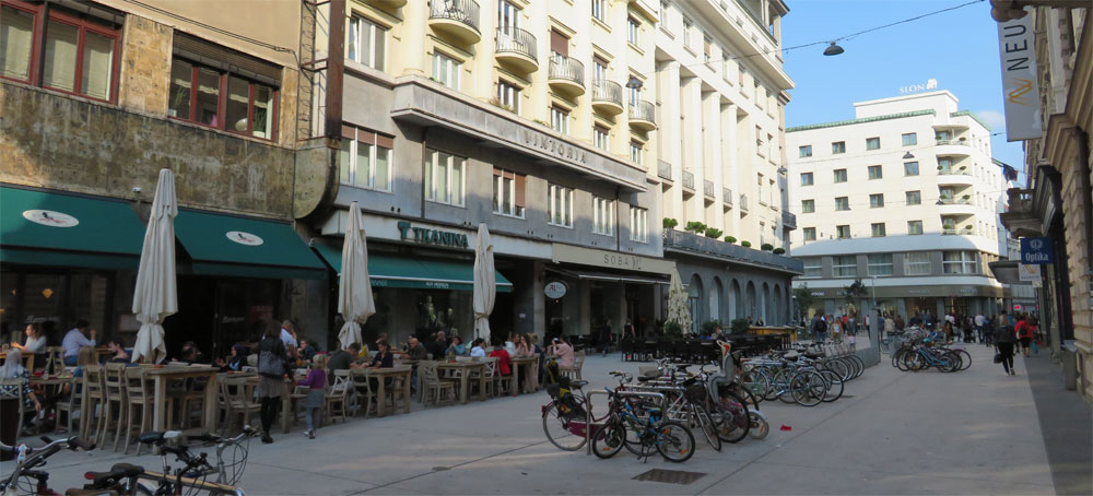We besluiten nog even naar een ander deel van de binnenstad te gaan om wat Sloveense biertjes (en Tamara wijntjes) te proberen. De wandeling door de binnenstad is gezellig, er heerst een leuke sfeer.