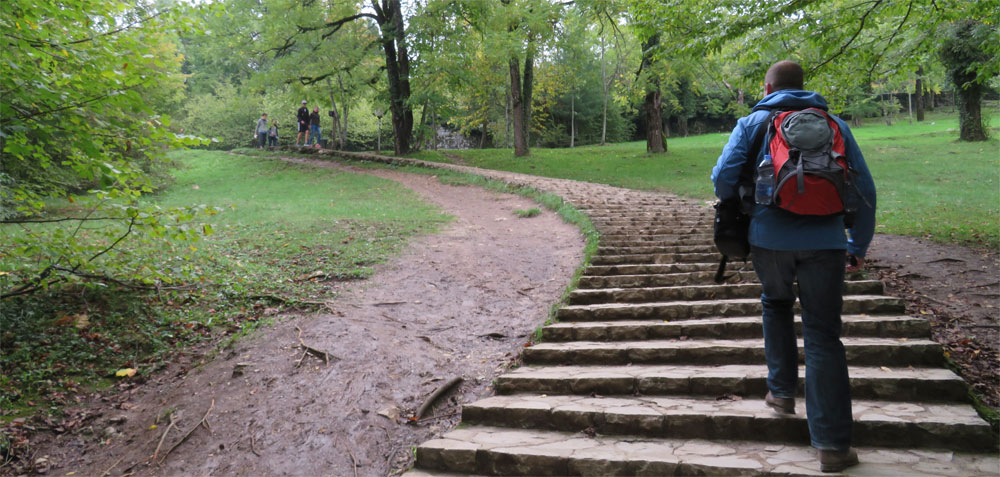 Wij kiezen voor route B, 4 km lang en een geschatte duur van 3-4 uur lijkt ons mooi. Het is niet lastig om de weg te vinden, overal staan bordjes met de route-letters.