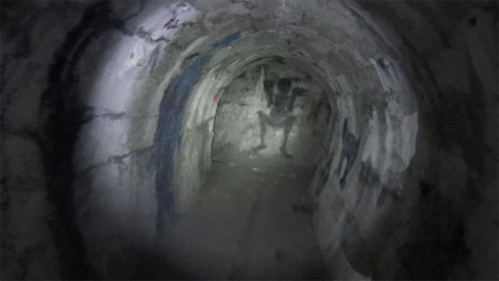 Het is er niet heel groot, en we hopen een ingang te vinden naar de gangen. We hebben nog geen idee waar exact te zoeken. Maar uiteindelijk lopen we een donkere gang in, en dat moet hem zijn, het gangenstelsel! We pakken onze zaklampen (de gang is echt pik-donker), trekken onze jassen aan, en lopen de gang in.