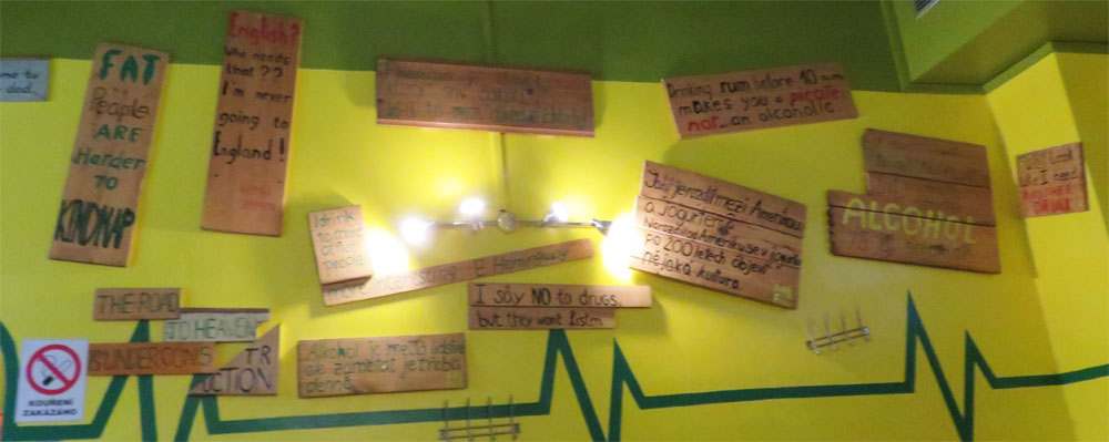 Het restaurant was ook leuk aangekleed met allemaal verschillende borden.