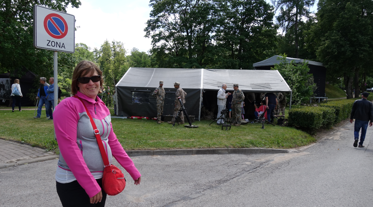 Aangekomen bij het plaatsje parkeren we de auto op een grote parkeerplaats en lopen het centrum in. Er blijkt in het park een event gaande te zijn. Geen idee hoe en wat, maar er is iets van het leger en kinderen bij betrokken.