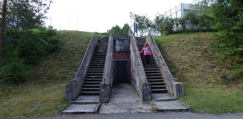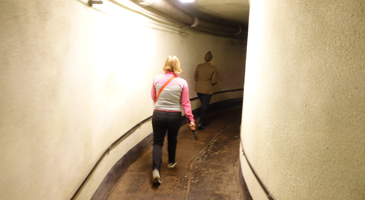 Na een klein uurtje lopen gaan we weer richting de receptie om met de gids de bunker in te gaan. De ingang welke we gebruiken is de ingang in het gebouw zelf. We dalen 9 meter naar beneden af met een trap om bij een aantal grote deuren uit te komen.