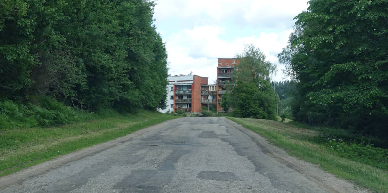 We stappen in de auto om naar Cēsis te rijden, een plaatste op ongeveer een half uurtje rijden van de bunker. Een halfuurtje rijden is het overigens al vrij snel. Verharde wegen zijn op veel plekken niet echt te vinden.