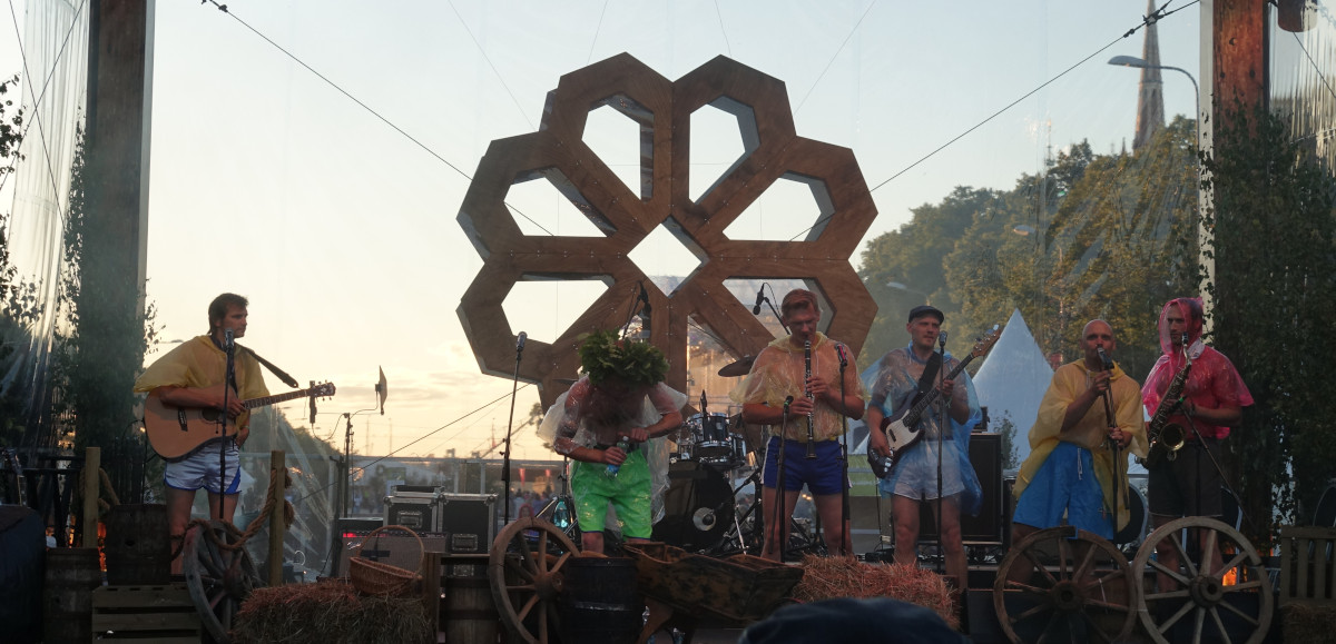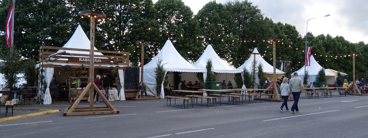 Als we klaar zijn met het eten lopen we richting de rivier. De gehele hoofdstraat is afgesloten vanwege de Līgo festiviteiten. Iets met voorjaar, halve liters bier, muziek en opblijven tot de zon opgaat (festival duurt tot 4u30). Het blijkt er nog niet heel druk, maar er heerst een hele leuke gezellige sfeer.