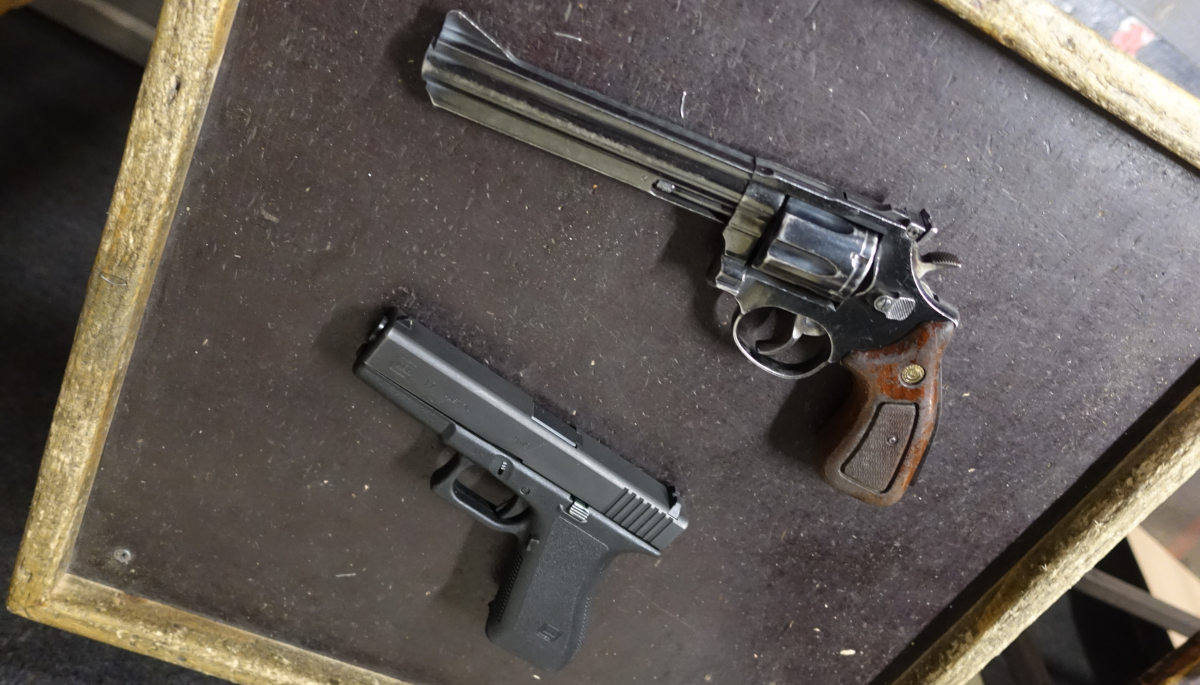 We gaan met twee instructeurs de baan in en gaan afwisseld targets schieten. De wapens worden klaar gelegd door de instructeur (niet alle wapens staan op onderstaande foto’s).