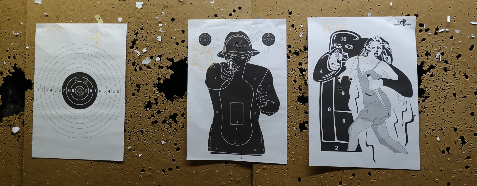 En als we helemaal klaar zijn gaan we ze stuk voor stuk af. Tussendoor bekijken we de resultaten op de targets (de twee linker targets zijn van mij, Tamara heeft de rechter). Je merkt wel dat ze in Florida en Louisiana een heel stuk vrijer zijn, vandaag mocht je bijvoorbeeld echt niet zomaar zelfstandig gaan schieten en je eigen wapens herladen oid. Je mocht de trekker overhalen, thats it. Verwacht overigens ook geen goedkoop uitje, dit schieten kostte ons ongeveer 150 euro, ook al is de prijs wel afhankelijk van de wapens welke je wilt proberen.